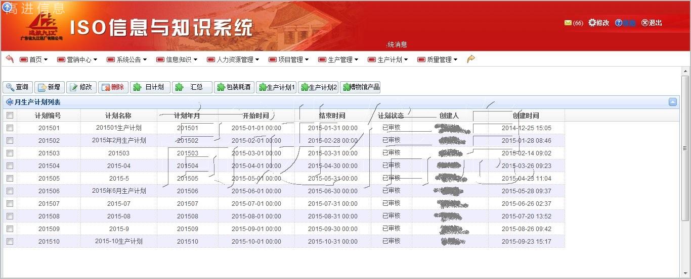 本系統(tǒng)提高了包裝生產(chǎn)計(jì)劃制定的效率,以及以日生產(chǎn)計(jì)劃為驅(qū)動(dòng),提高倉(cāng)管部、采購(gòu)部的包裝物料需求和采購(gòu)的計(jì)劃效率,在新ISO平臺(tái)中添加生產(chǎn)計(jì)劃模塊。實(shí)現(xiàn)從營(yíng)銷中心、生產(chǎn)部、包裝車間、倉(cāng)管部、采購(gòu)部之間的信息共享,以訂單驅(qū)動(dòng)模式提高各部門之間的協(xié)作效率。