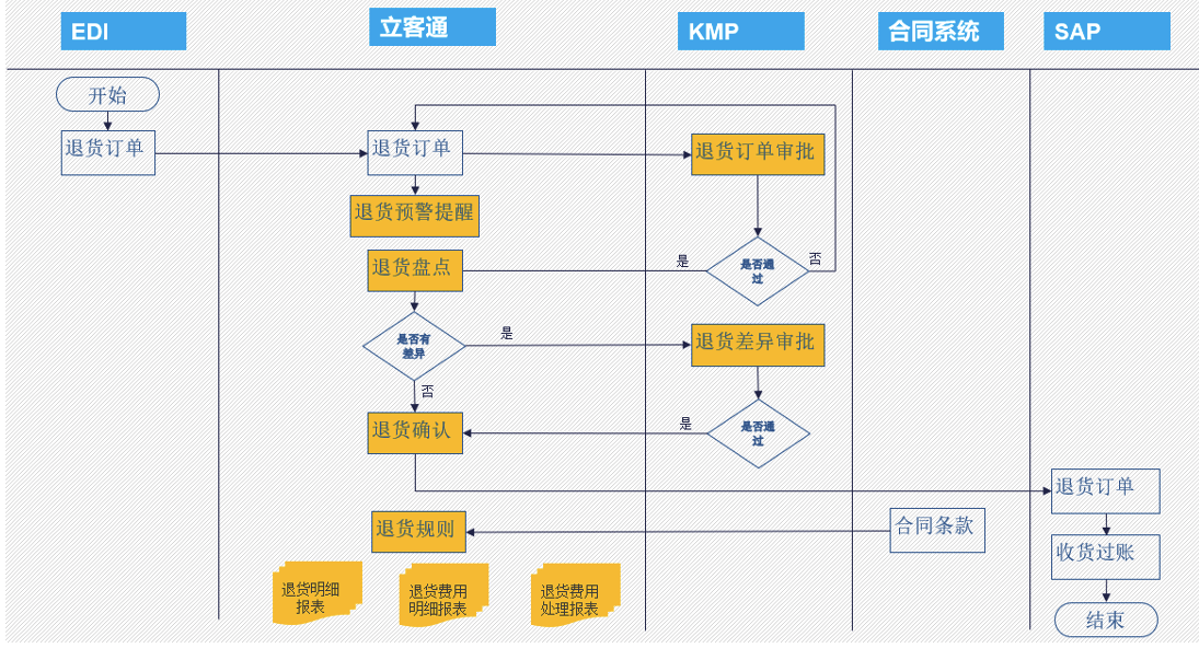 2、退貨訂單通過導(dǎo)入,并通過流程審批,對退貨訂單進行接入或處理退貨差異,為公司減 少退貨差異的損失。